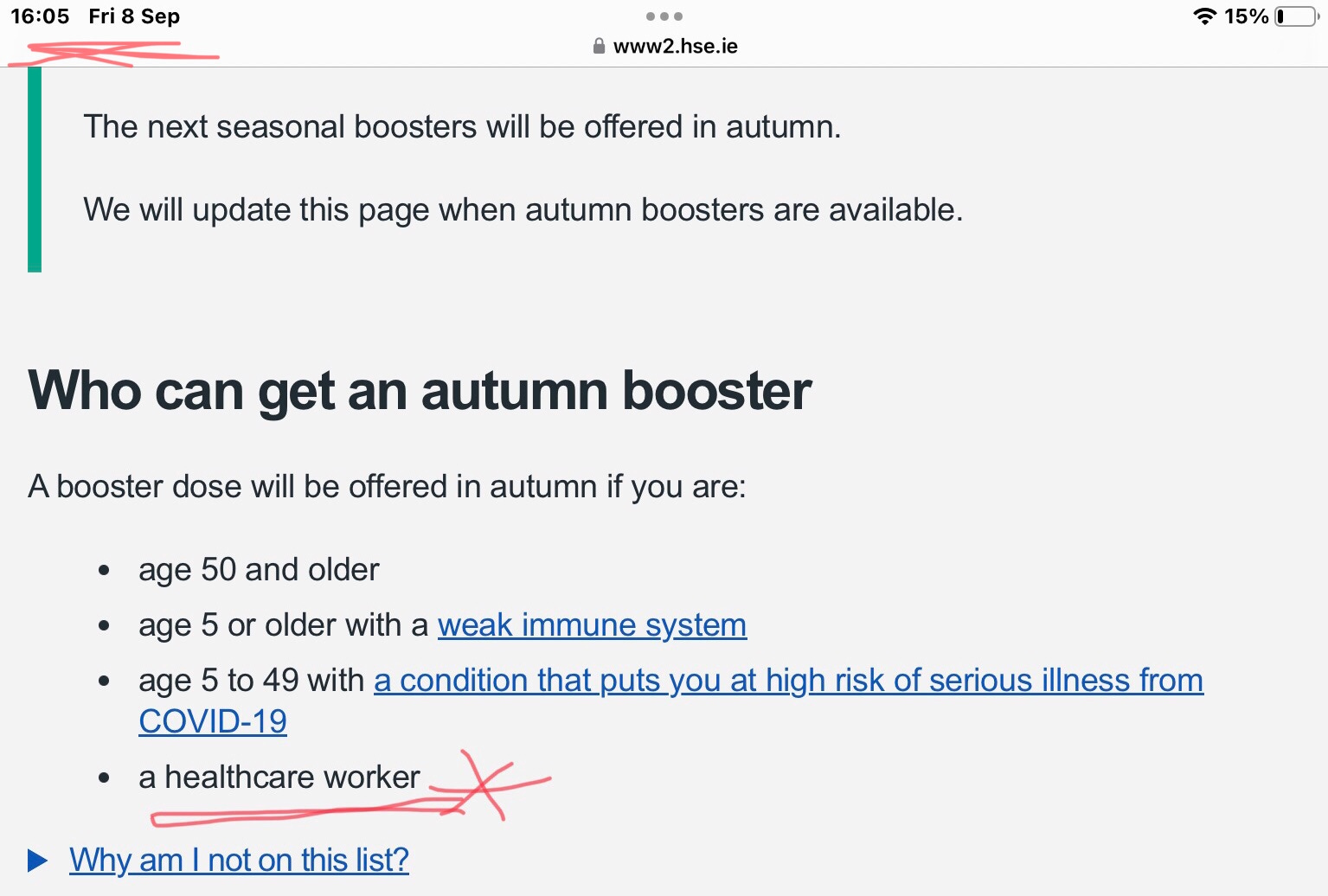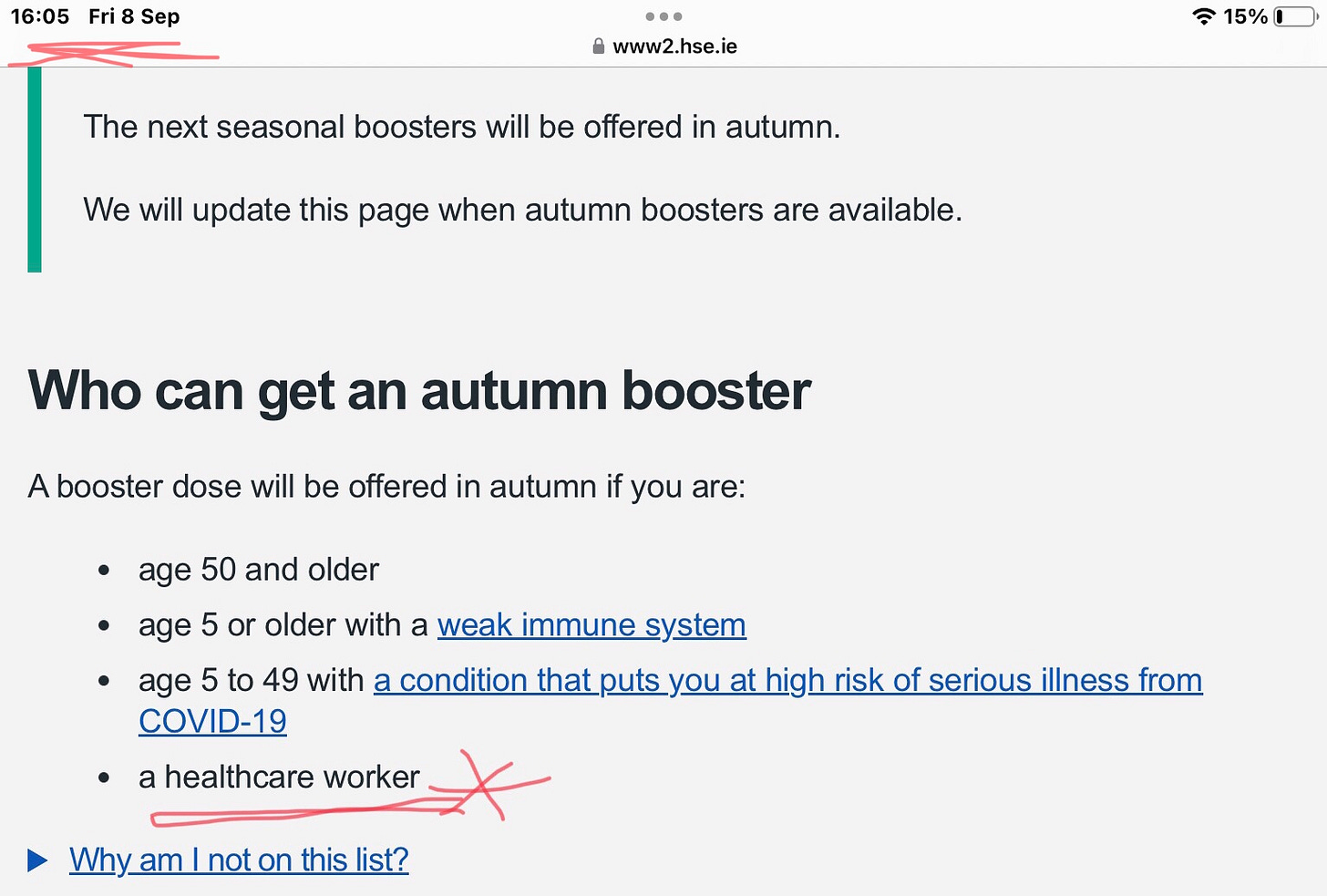 The HSE are in the process of finalising details of their Autumn Covid 19 mRNA vaccination plan which will be offered to the following categories of the population.