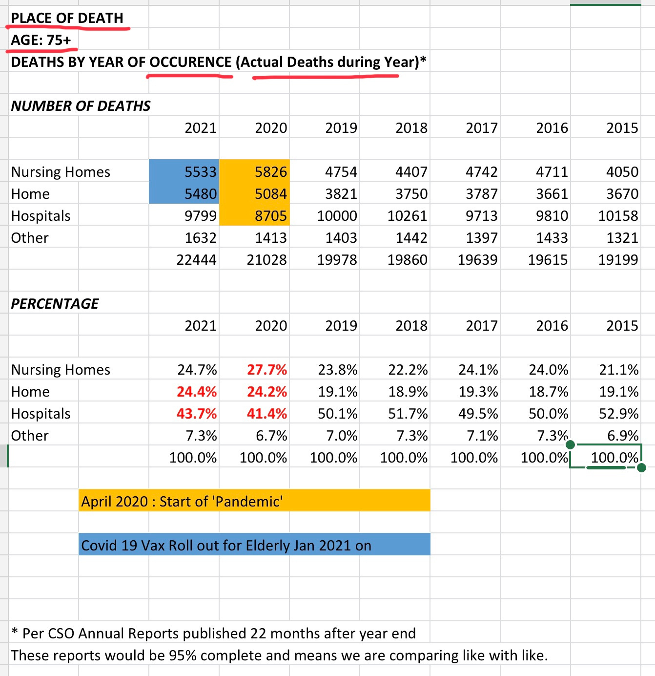 What I wish to do today is to trawl CSO statistics on ‘place of death’ for any evidence or indication that something strange if not sinister was going on from March 2020 onwards.