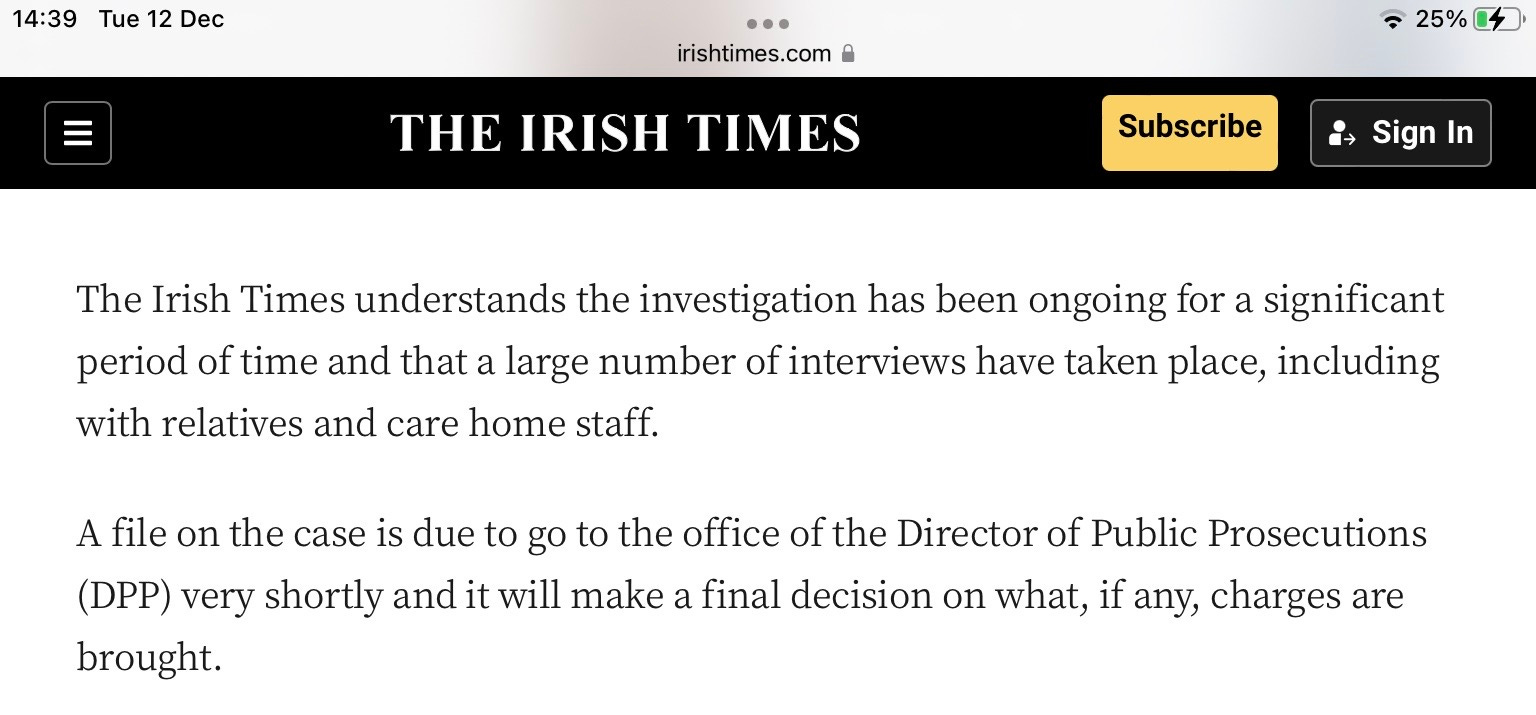 One can only hope that the current criminal investigations as detailed in the Irish Times article below, will offer an insight into this scandal and bring justice to the dead and their bereaved.